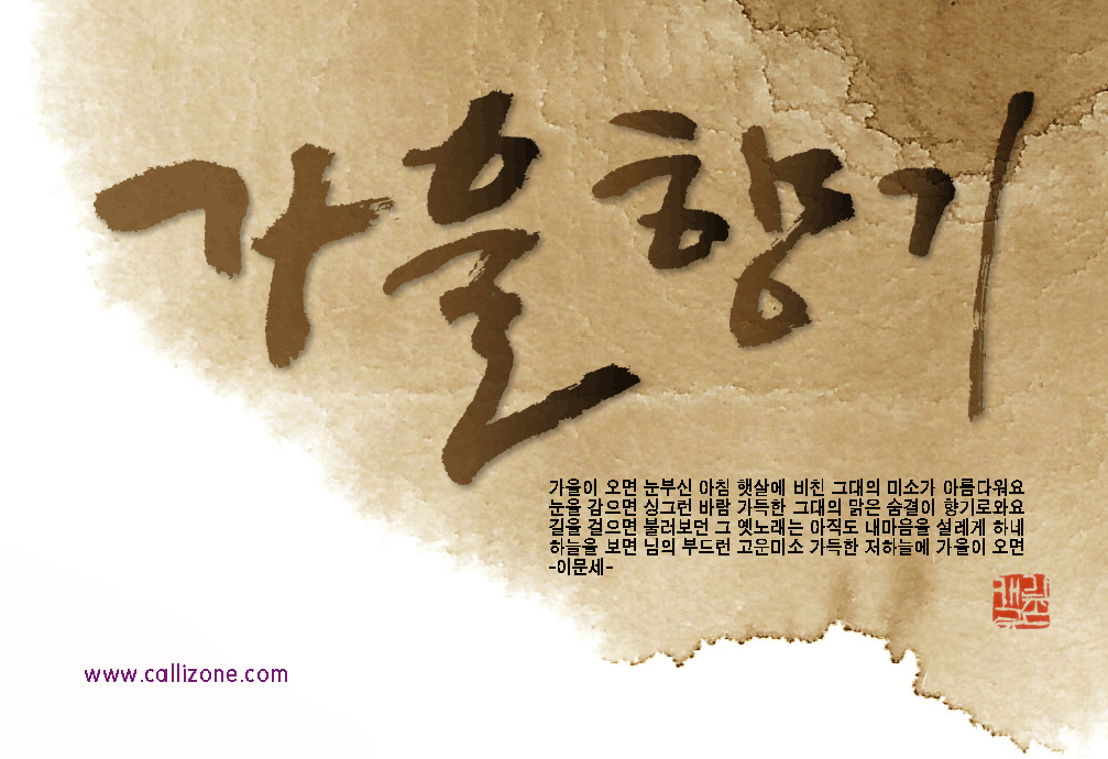 [직접쓴 캘리} 가을향기 callizone 일반 1 9059 2007.10.02 14:07 http://www.callizone.com/home/index.php + 547 가을이 익어가고 있습니다. 가을을 음미하면서 한번 만들어 보았습니다. 회원님들 감기조심 하세요^^