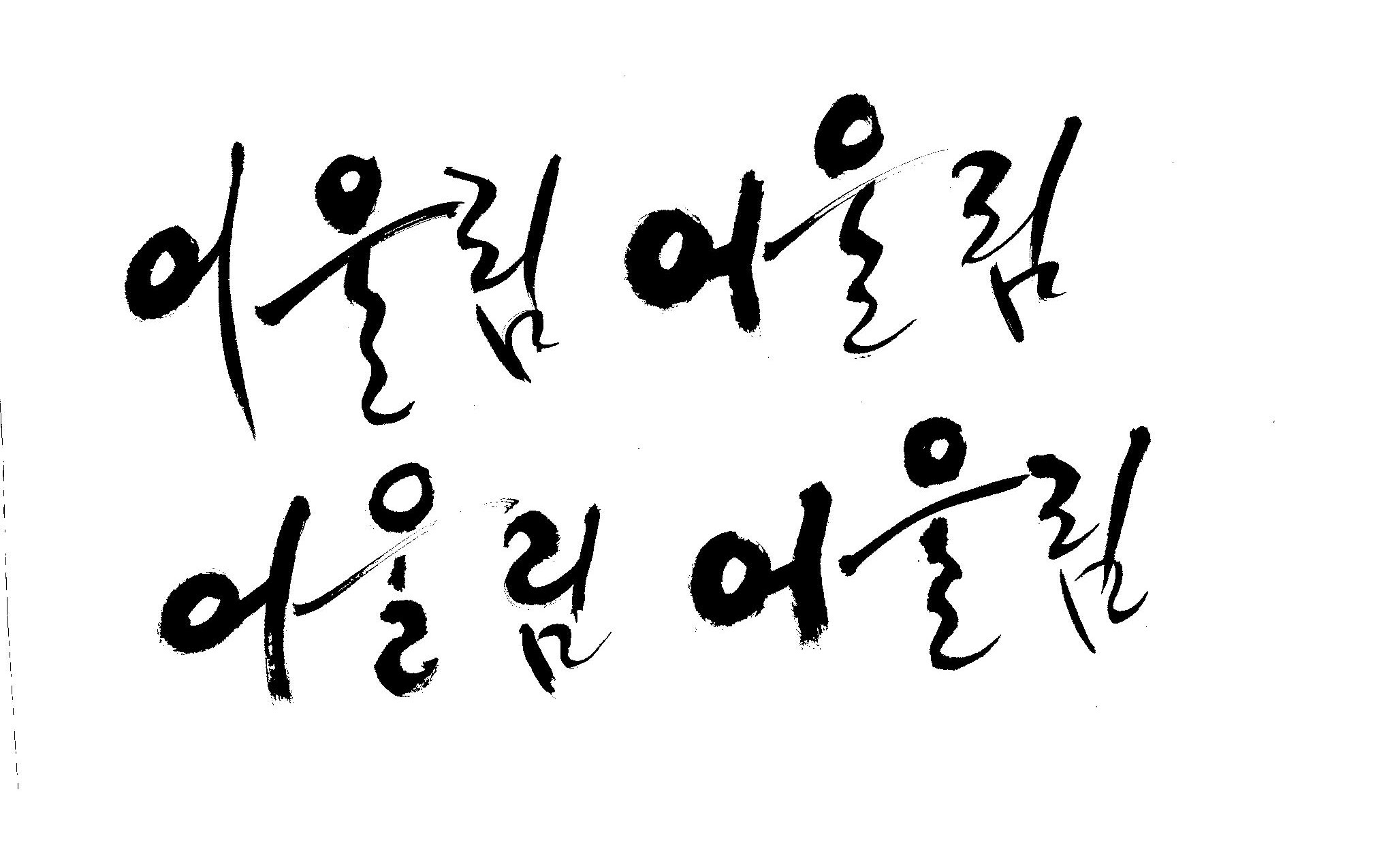 켈리 부탁좀 드릴께요~ 김철호 일반 0 11361 2009.01.14 10:49 > > > > > 책표지에 나갈 글씨로 '어울림'이란 켈리를 쓰고싶은데요... > > 도와주세요~ > > > 좋은 글이라서... > 긴....습작시간이 있었지만 > 결과물이 왜소하네요 > 유용하게 쓰시길... >
