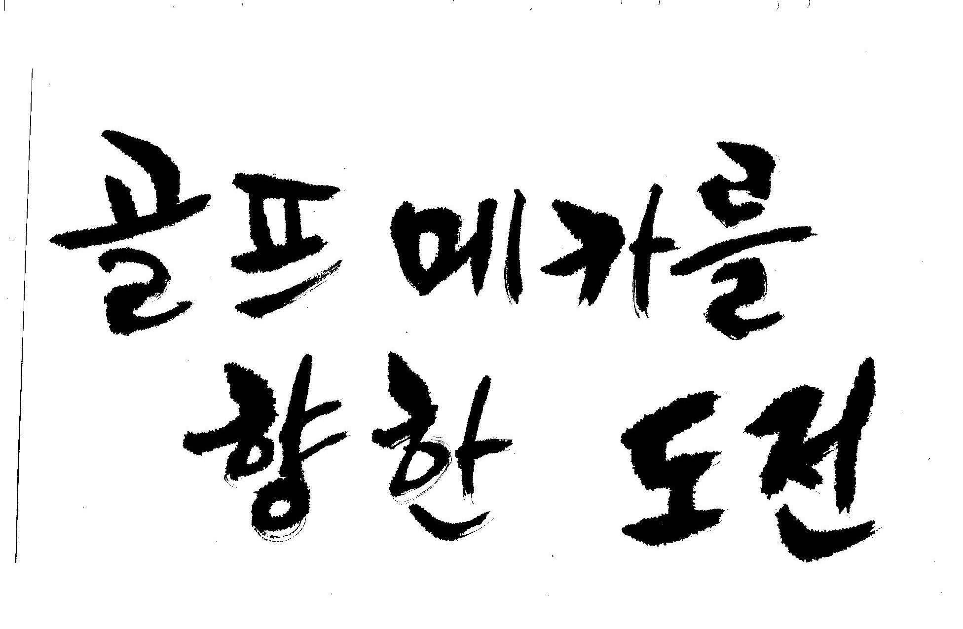 우경의 행복한 캘리세상-골프메카 김철호 일반 0 7689 2009.07.18 10:28 > > > > > > > > > 리듬감을 최대한 살리고 ㅡ 스포츠의 운동감과 밝음 > > > 기교섞인 획을 배제--일반적인 느낌 > > > 굵기변화를 통하여 도전 낱말을 강조 > > > 스타일은 비슷하지만 ...한 사람이 썼으니까 ㅎㅎㅎ > > > 서로 다른 글꼴을 올린 것은... 비교하여 보시고... > > > 편집자에게 선택권을 주는 것입니다 > > > > > >